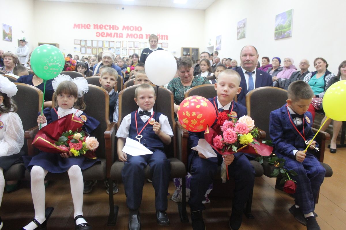 На торжественной линейке они получили подарки, а также самый заветный золотой ключ в Страну Знаний из рук учащегося 11 класса Константина Касьянова.
