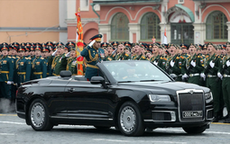 Парад принимал министр обороны России Сергей Шойгу, который выехал на площадь из ворот Спасской башни Московского Кремля в кабриолете Aurus.